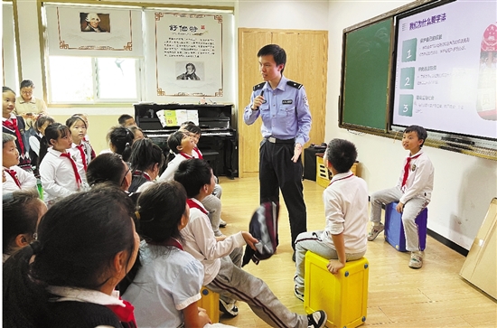 近日,温州市公安局龙湾区分局天河派出所社区民警黄振汉以法制副校长的身份,来到天河二小上法治课,通过PPT讲解、趣味提问、场景模拟等方式,丰富孩子们的法律知识、提高孩子们的法治意识。 通讯员 孔健克 摄