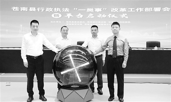 | 10月19日,苍南县行政执法“一类事”改革工作部署会暨平台启动仪式在苍南县行政中心举行。 |