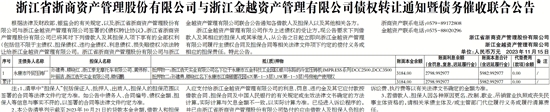 浙江省浙商资产管理股份有限公司与浙江金越资产管理有限公司债权转让通知暨债务催收联合公告