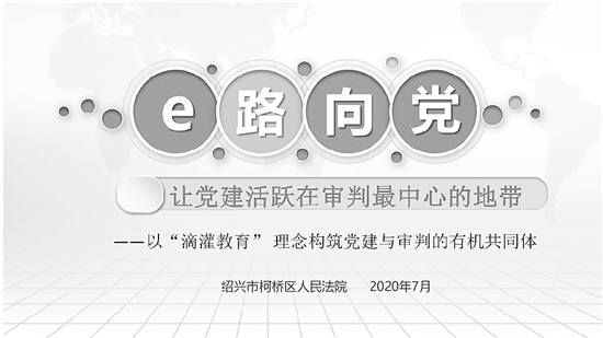 “‘e路向党’是我们法院培育的一个党建品牌,以‘滴灌教育’理念构筑理论学习与审判业务的有机融合体,由‘e心学习’‘e体培训’‘e家讲堂’‘e席讨论’四部分组成,还获得过全国优秀党建案例的荣誉。”跟随柯桥法院工作人员的脚步,来到这一品牌的线下落地点——青习书坊,这里不仅有着翰墨书香,也是该院“e路向党”体系中“e体培训”的面对面培训课堂。