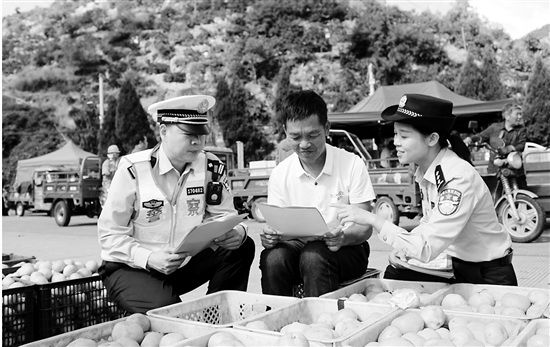 涌泉蜜桔成熟之际,为护航蜜桔采摘销售期间的出行安全,守护桔农“钱袋子”,临海涌泉派出所走进涌泉外岙和高速口路段桔农售卖现场,开展反诈、交通出行安全宣讲,讲解诈骗套路,分发交通安全告知书,进一步提升桔农安全意识。 通讯员 毛慧敏 冯丹妮