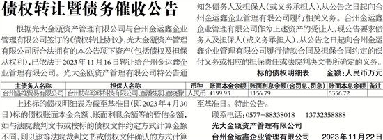 上述标的债权明细表为截至基准日(即2023年4月30日)标的债权账面本金余额、账面利息余额等的暂估金额,如与法院裁判文书或按标的债权文件约定方式计算金额不同,则以该等法院裁判文书或债权文件确认的方式计算至基准日。特此公告。