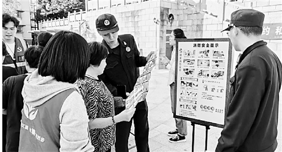 近日,长兴县龙山街道应急管理站、消防站工作人员联合体育场社区志愿者,利用宣传展板,为居民讲解秋季消防安全知识。