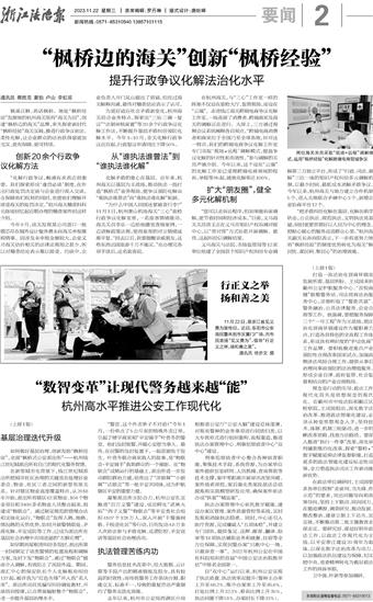 执法办案管理中心依托数字赋能,建设办案区管理、案件质量管控等系统,实时发现和消除执法隐患。同时,中心还引入医疗资源,完成嫌疑人“五项体检”,并建立专门团队,提供鉴定、送押、邮寄、翻译、陪审等18项执法辅助业务和就餐、住宿等全方位保障,实现民警办案“只跑中心一地、只做审查一事”。2022年杭州公安在中国社科院组织的首届“中国公安法治指数评估”中排名全国第一。