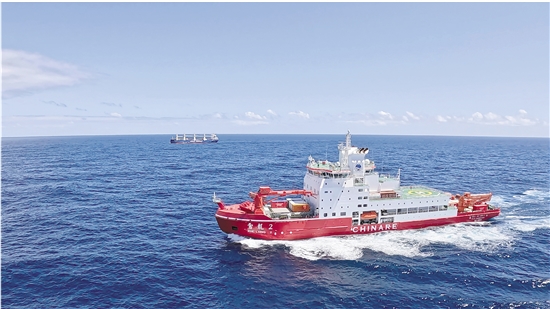 “雪龙2”号和“天惠”轮结伴穿越西风带