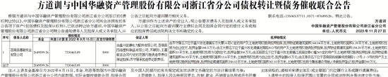 注:1.上表本金基准日为2022年8月15日,本金、利息等数据为中国华融资产管理股份有限公司浙江省分公司内部数据,实际金额按借款合同、担保合同及中国人民银行的有关规定或生效法律文书确定的方法计算结果为准;