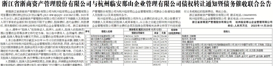 浙江省浙商资产管理股份有限公司与杭州临安那山企业管理有限公司债权转让通知暨债务催收联合公告