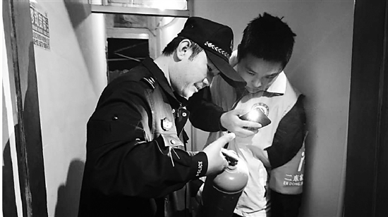 近日,温州市公安局龙湾区分局沙城派出所民警陈巨匾联合“二东家”义警队,开展出租房消防安全检查,受到居民一致好评。 通讯员 王娟 摄