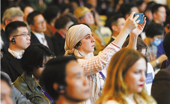 12月3日,以“践行全球文明倡议,推动文明交流互鉴”为主题的首届“良渚论坛”在杭州开幕。图为外国艺术家应邀出席论坛。 新华社 黄宗治 摄