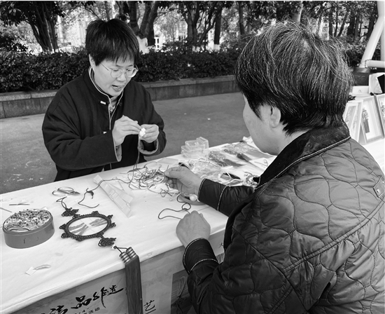 活动现场,不仅有咏春拳、古琴、宋制汉服等节目表演,还支起了不少非遗项目摊位,西兴盘纽扣、剪纸、杭州刺绣、宋代点茶、西兴茶点制作等非遗项目现场展示。“将法字编织在红色框内,寓意法律有边界,是不可逾越的底线。”非遗项目传统绳结编织技艺传承人戴世茂,一边指导现场参与者编织绳结,一边说。