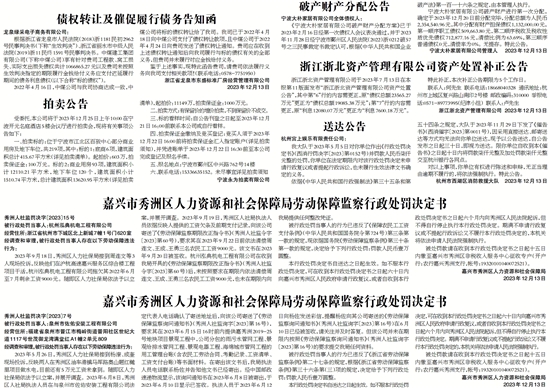 受委托,本公司将于2023年12月25日上午10:00在宁波开元名庭酒店5楼会议厅进行拍卖会,现将有关事项公告如下: