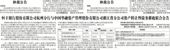 恒丰银行股份有限公司杭州分行与中国华融资产管理股份有限公司浙江省分公司资产转让暨债务催收联合公告