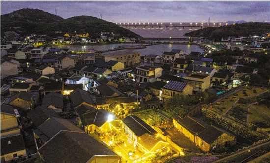| 海岛特色民宿产业 助力乡村振兴 舟山市岱山县岱西镇双合村位于岱山岛最西端,村内超过50%为60周岁以上老年人,45岁以下中青年多在外就业,房屋闲置率较高。近年来,在舟(山)岱(山)跨海大桥通车的辐射带动下,双合村以“石、渔”为特色,依托省级历史文化重点保护利用村建设和花园示范村庄建设,积极发展特色民宿产业及海岛文旅新产业,吸引越来越多的游客与青创客来到海岛,助力乡村振兴和海岛百姓共同富裕。图为12月19日,空中俯瞰岱西镇双合村,远处就是舟岱跨海大桥(无人机照片)。 新华社 徐昱 摄 |