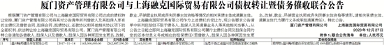根据厦门资产管理有限公司与上海融克国际贸易有限公司达成的债权转让安排,厦门资产管理有限公司将其对公告清单所列借款人及其担保人享有的主债权及借款合同、担保合同、抵债协议、还款协议和其他相关协议项下的全部权利,依法转让给上海融克国际贸易有限公司。厦门资产管理有限公司特公告通知各借款人、担保人以及借款人、担保人因各种原因发生更名、改制、歇业、吊销营业执照或丧失民事主体资格等情况的相关承债主体或清算主体。