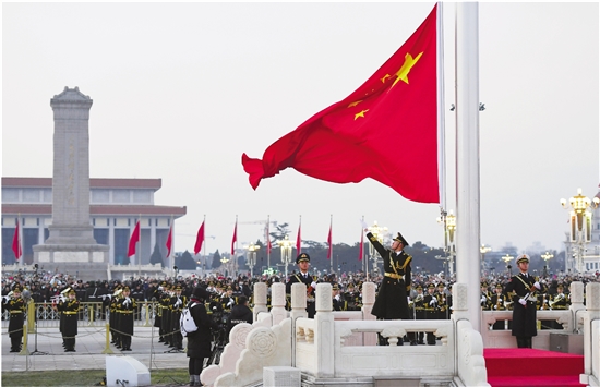 | 1月1日晨,北京天安门广场举行隆重的升国旗仪式。 新华社记者 陈钟昊 摄 |