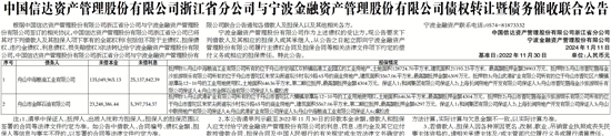 中国信达资产管理股份有限公司浙江省分公司与宁波金融资产管理股份有限公司债权转让暨债务催收联合公告