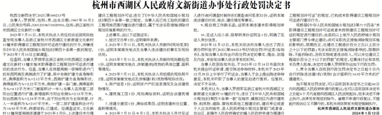 杭州市西湖区人民政府文新街道办事处行政处罚决定书