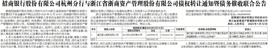 根据招商银行股份有限公司杭州分行与浙江省浙商资产管理股份有限公司签署的《不良金融资产转让合同》(2023年12月18日),招商银行股份有限公司杭州分行将其对公单清单所列借款人享有的全部权利(包括但不限于主债权、担保债权、违约金债权、利息债权、损失赔偿权)依法转让给浙江省浙商资产管理股份有限公司。招商银行股份有限公司杭州分行与浙江省浙商资产管理股份有限公司联合公告通知各债务人及担保人以及其他相关各方。