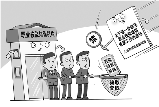 | 人力资源社会保障部近日发布“关于进一步规范职业技能培训管理工作的通知”,要求规范培训机构办学,严禁以招生费等名义直接或变相买卖符合补贴条件的生源,以联合办学、培训合作等名义违规转包政府补贴的培训项目,与参训人员串通提供虚假信息骗取套取资金等行为。 新华社 朱慧卿 作 |