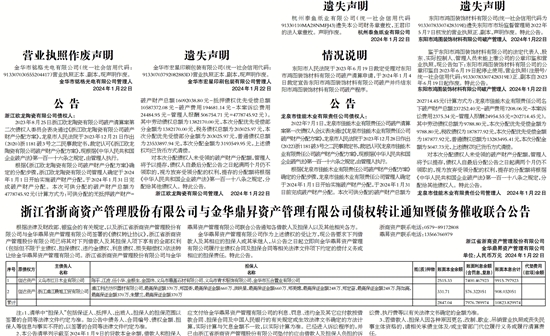 浙江省浙商资产管理股份有限公司与金华鼎昇资产管理有限公司债权转让通知暨债务催收联合公告