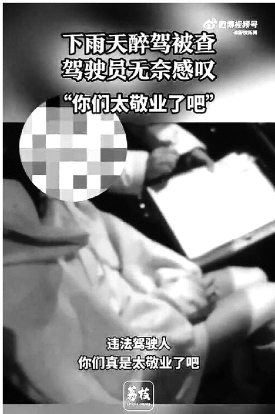 女子雨天醉驾被查感叹民警太敬业