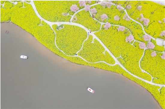 这是3月5日在重庆市巴南区二圣镇集体村云林天乡景区拍摄的油菜花田(无人机照片)。
