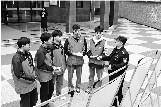 近日,金华市公安局婺城分局罗店派出所组织“尖峰卫士”青年志愿服务队,到职业学校开展反诈、禁毒、反谣宣传。 通讯员 朱明月