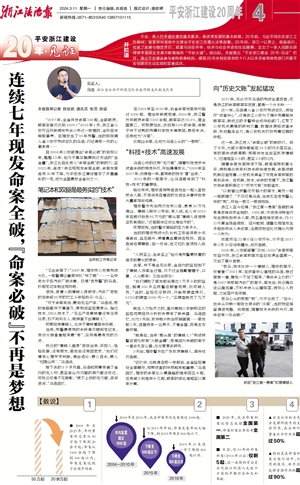 自2004年公安部提出“命案必破”的目标以来,整整13年,他终于真实触摸到这句话的“含金量”,浙江也自此进入“命案全破”的新时代:至2023年,连续7年实现现发命案全破,命案发案连续20年下降,为平安浙江建设增添了浓墨重彩的一笔,成为全国最安全省份之一。