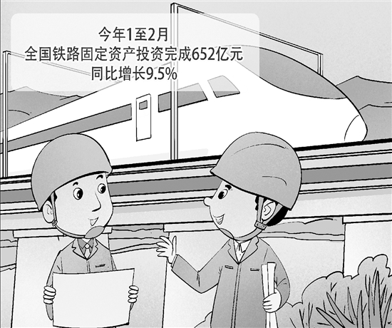 记者近日从中国国家铁路集团有限公司获悉,今年1至2月,全国铁路固定资产投资完成652亿元,同比增长9.5%,铁路建设优质高效推进,重点工程项目建设进展顺利,铁路现代化基础设施体系加快构建。