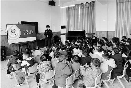 近日,诸暨市店口派出所民警受邀走进店口镇中心幼儿园,对师生们进行反诈宣传。民警通过现场提问、模拟场景、发放手册等,向师生们介绍了常见的诈骗手法和防范措施,提醒他们要提高防范意识,不给犯罪分子可乘之机。