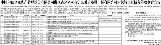 中国中信金融资产管理股份有限公司浙江省分公司与宁波甬乐建设工程有限公司债权转让暨债务催收联合公告