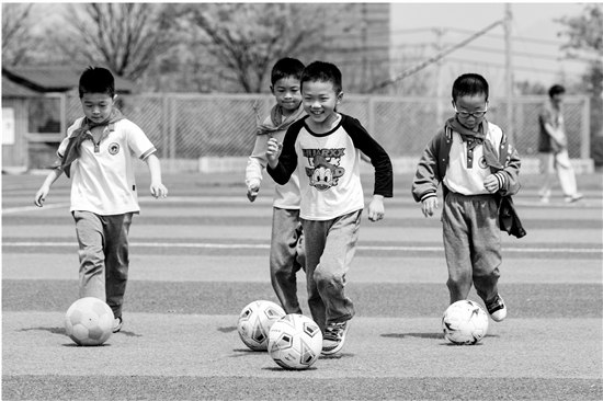 | 3月25日,在金华市金东区塘雅镇中心学校,学生在大课间踢足球。 金华市各中小学将踢毽子、滚铁环、抽陀螺、武术操、放风筝、掷沙包等10余项运动纳入大课间活动。春日里,孩子们在体育锻炼和趣味游戏中增强体质、健康成长。 新华社 胡肖飞 摄 |