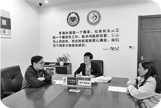 在社会治理中心的“金牌和事佬工作室”里,“全国人民调解专家”沈寅弟一边倾听双方诉求、一边反复翻阅当初签订的装修合同。经过多次调解,最终双方签订调解协议,协商决定尾款先付一半,扣质保金、设违约金,周大妈悬着的心终于放了下来。