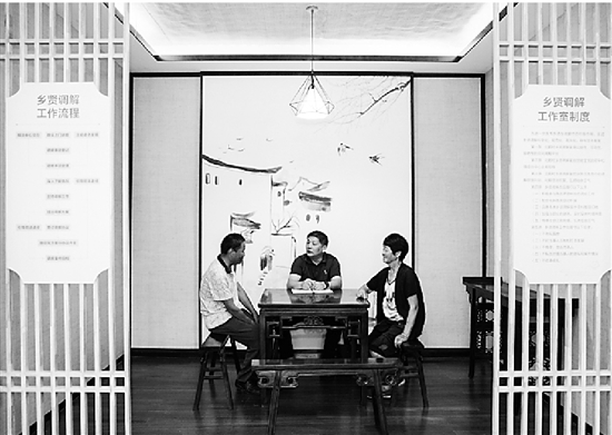 乡贤调解员调解现场