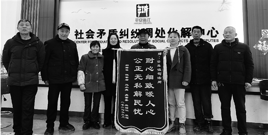 日前,兰溪市游埠镇矛盾调解中心,一群六七十岁的阿姨带着家人送上锦旗,感谢工作人员为她们要回拖欠多年的工资。