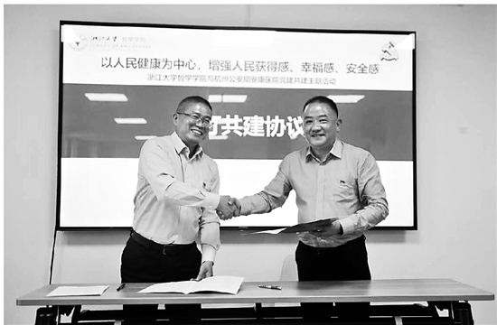 本报讯 近日,浙江大学哲学学院与杭州市公安局安康医院签署了《“以学铸魂、以学增智、以学正风、以学促干”党建活动合作书》。