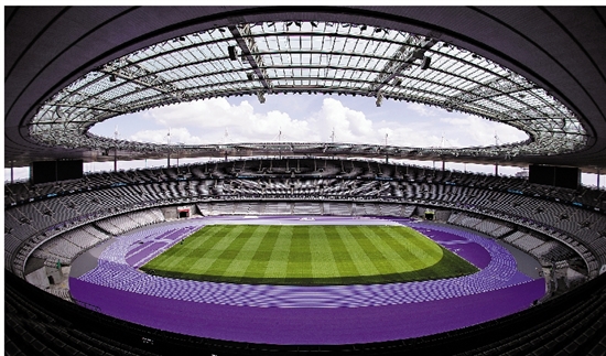 日前,巴黎北部的法兰西体育场铺设深浅两种紫色的跑道用于奥运会田径项目比赛,这也是奥运会田径赛场首次出现紫色跑道。