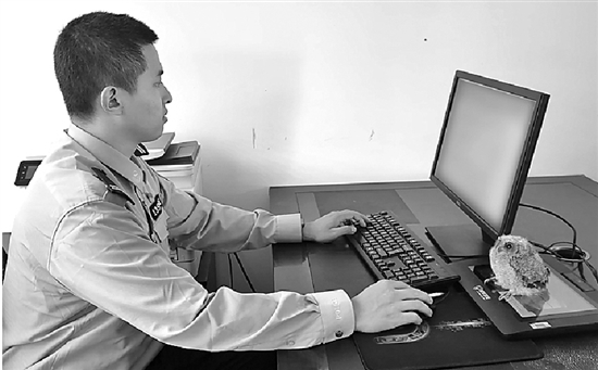 本报讯 近日,一只落单的猫头鹰幼崽来到乐清市公安局大荆派出所,陪民警“值”起了夜班。到了下半夜,这场专业熬夜与职业熬夜的PK赛分出了胜负,小家伙强忍困意,呆萌地站在电脑前。