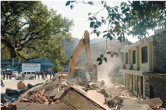 这棵约920岁的香樟树被称为“苍南树王”,但近年来,因周围建筑的扩建,该树生长受限,树干倾斜、树冠出现缺口。为了保护这棵古树,南宋镇政府在多次与房主协商拆除违建楼房未果后,决定采取法律手段。