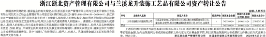 浙江浙北资产管理有限公司与兰溪龙升装饰工艺品有限公司资产转让公告