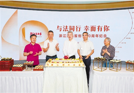 浙江日报报业集团社长、党委书记姜军出席活动,并与《浙江法治报》历任社长、总编辑一起切蛋糕,为《浙江法治报》创刊40周年庆生。