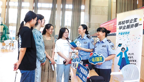 近日,平湖市公安局钟埭派出所组织民、辅警,前往辖区高校,实地宣传毕业生落户政策,助力大学生本地就业落户。