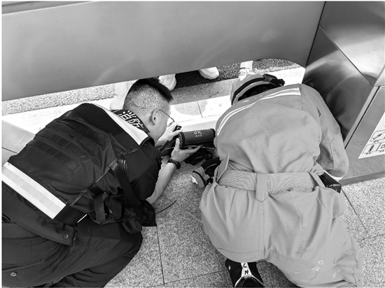 “戒指掉在垃圾铁箱缝里拿不出来了?”“需要我们帮助吗?”“是在哪个地方?”……很快,消防员通过文字沟通确认了女子丢戒指的位置,并和女子一起赶到现场进行处置。由于公交站台旁的垃圾桶是被水泥浇固住的,无法轻易搬开,几名消防员趴在地上,互相配合利用电筒照明,尝试用细铁丝伸进垃圾桶背后的细小地缝中捞取戒指,但均未成功。