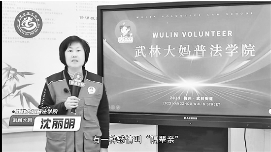 “欢迎来到武林大妈普法学院,今天我们来关注孩子们打游戏充值的话题……”面对镜头,“武林大妈”杨映霞娓娓道来。作为人气颇高的“流量级”团队,武林大妈当中的骨干成员,已经录制了数十期普法短视频,不但在浙江日报“潮新闻”app推送,还在区司法局的官微以及街道社区的微信群中转发,收获了不错的评价。