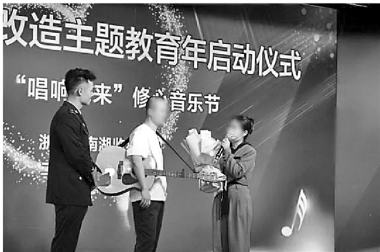 “在警官的支持和帮助下,我们加入分监区音乐兴趣小组学习乐器。”参演罪犯陈某自豪地展示着手中吉他,他说,在音乐修心中,他找到了改造的动力与方向。