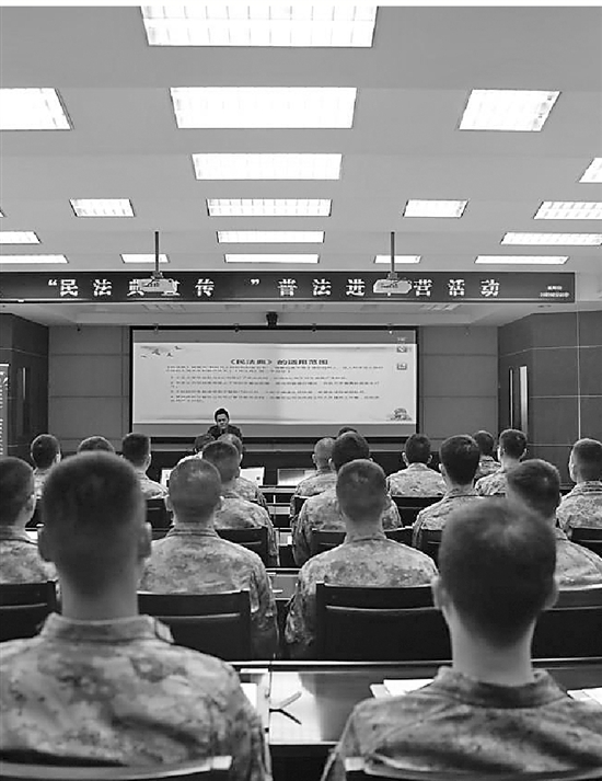 近日,杭州市西湖区司法局留下司法所为某驻地部队举办了一场“民法典进军营”活动,特邀浙江国圣律师事务所律师苏奇昊为官兵们讲授民法典相关法律知识,引导官兵们增强法治思维、提高法律意识。