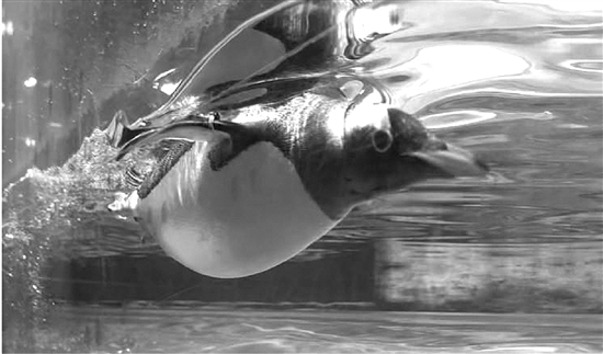 | 企鹅在餐厅企鹅馆中游泳玩耍 |
