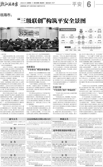 20年光阴流转,平安叙事未曾停。今年4月,临海市召开平安临海“二十连创”誓师大会,坚持把抓基层、打基础作为长远之计和固本之策。一事有恒,万事渐振,以平安浙江建设20周年为新起点,深化平安村(社区)建设为新契机,临海市将接续擘画平安全景图,全面提升“本质平安”层次,寓文于治、韧性治理,主动探索形成政法工作现代化临海实践样本,以重点突破带动平安建设整体水平实现新跃升。