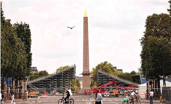 从协和广场上的卢克索方尖碑到荣军院的金色穹顶,从铁塔之下的战神广场到香榭丽舍大道旁的大皇宫,巴黎奥运会临时场馆的搭建工作正在紧锣密鼓地进行。