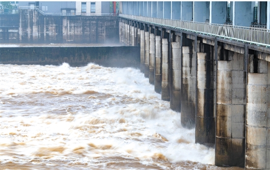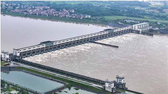 6月12日,金华市衢江姚家航运枢纽泄洪闸全部开启。入梅后,金华市及上游出现持续降雨天气,导致河流水位上涨,当地果断采取泄洪腾库容措施。 通讯员 胡肖飞 摄